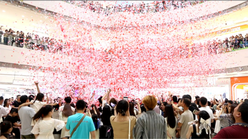 5月20日,商管南区124座万达广场以“心动派对”为主题,举办多种线上线下520互动活动,通“爱的抱抱”、玫瑰花瓣雨、浪漫气球雨、霸屏广场LED大屏告白等活动,为广场营造节日浪漫氛过围。广场还联动品牌开展520超级品牌日活动,打造情人节消费打卡地。